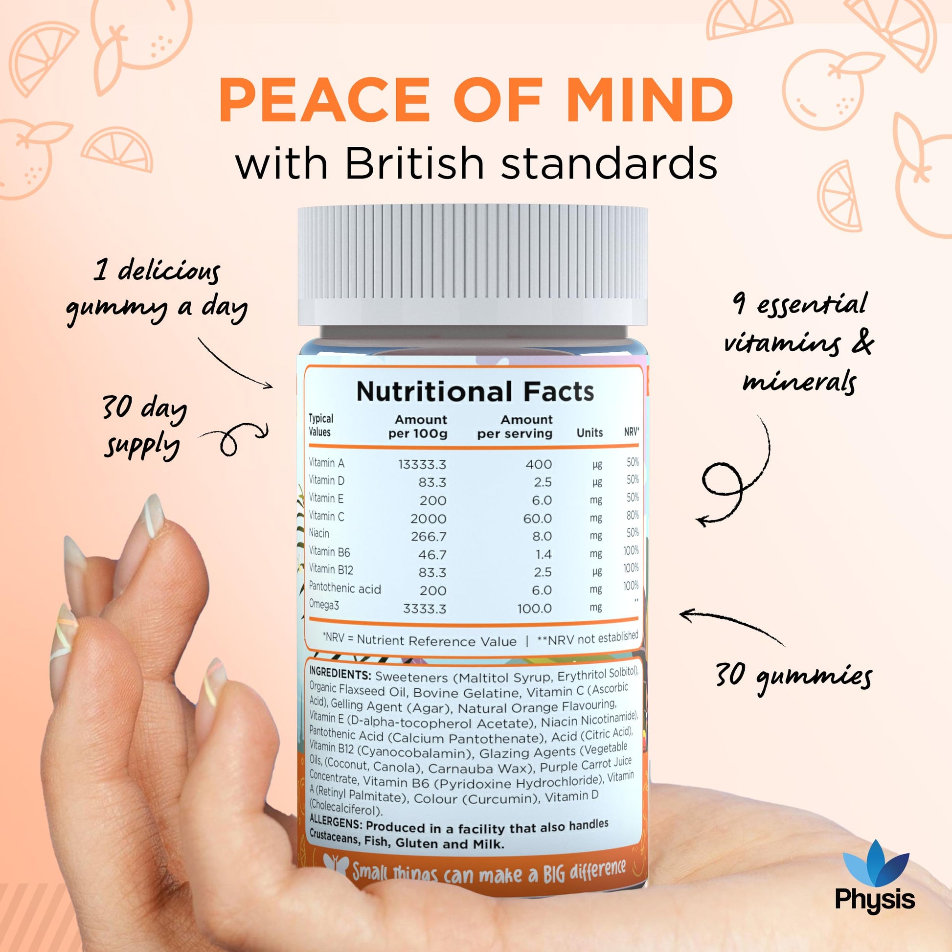 Every one of our childrens multivitamins are manufactured to excellent quality standards, containing zero artificial chemicals, fillers or preservatives. This means our gummies provide support for your child's immune system. By eliminating artificial fillers and flavours, our formula provides more powerful benefits to ensure a healthy child. At Physis, we strongly believe in natural health, and our multivitamins for kids embraces every aspect of this.