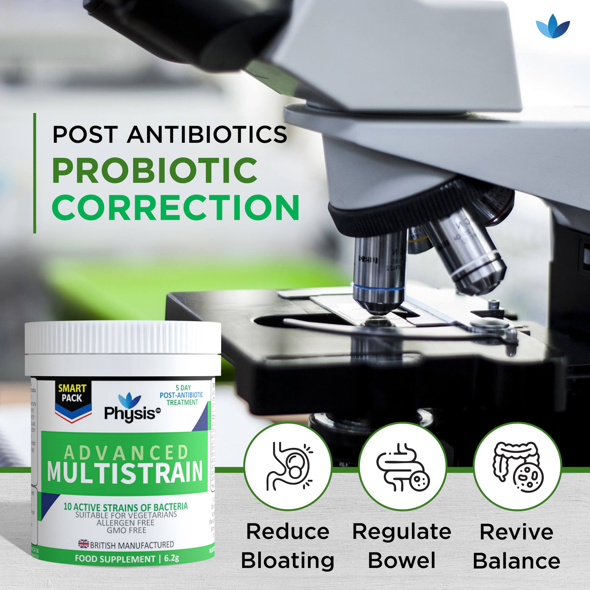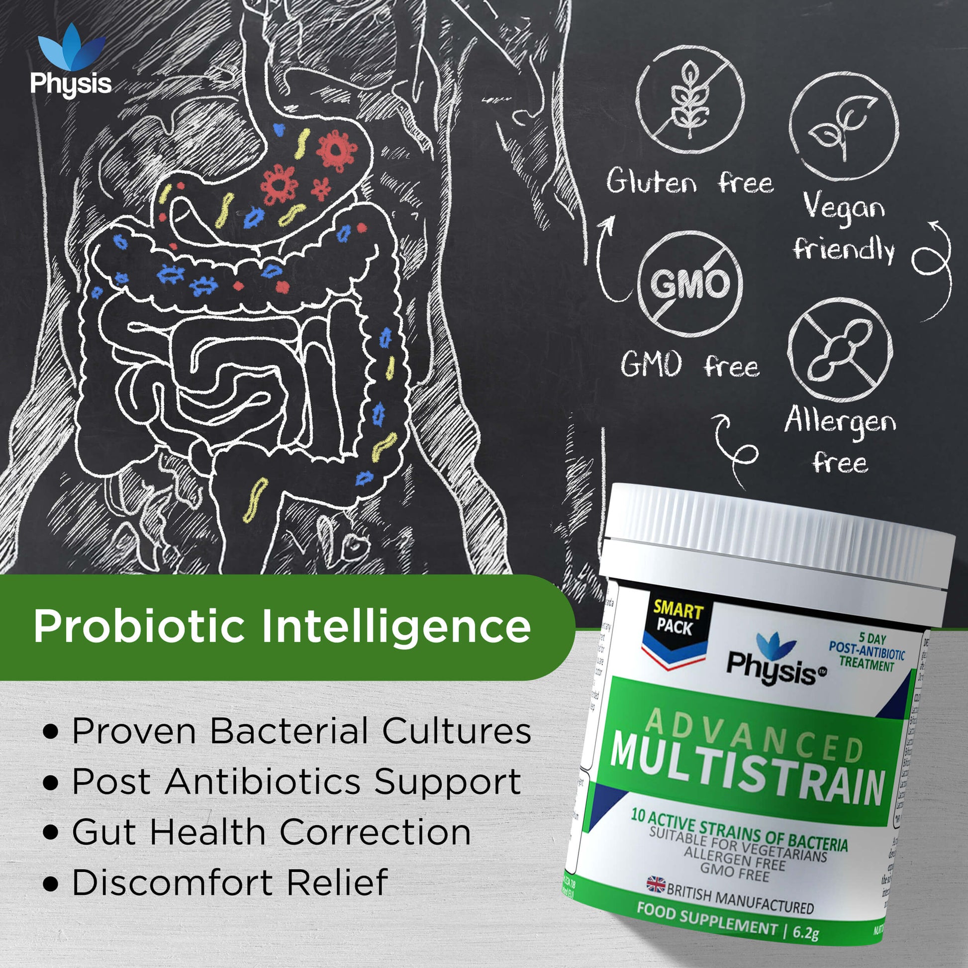 Physis Advanced Multistrains carefully selected essential strains of living bacteria that contribute towards an (almost) immediate and ongoing healthier microbiome: -