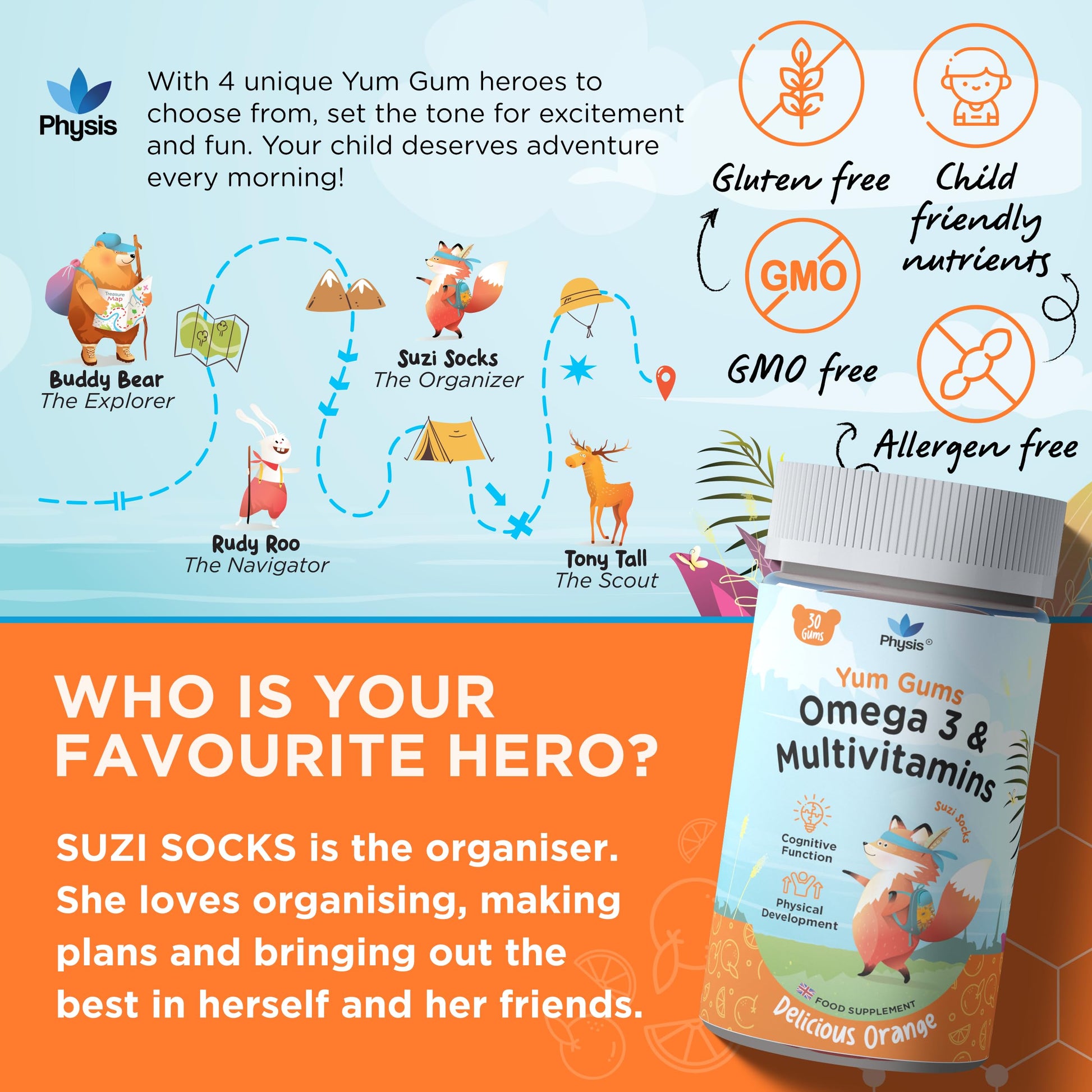 PHYSIS YUM-GUM HERO: SUZI SOCKS - The organiser. She loves organising, making plans and bringing out the best in her friends.
